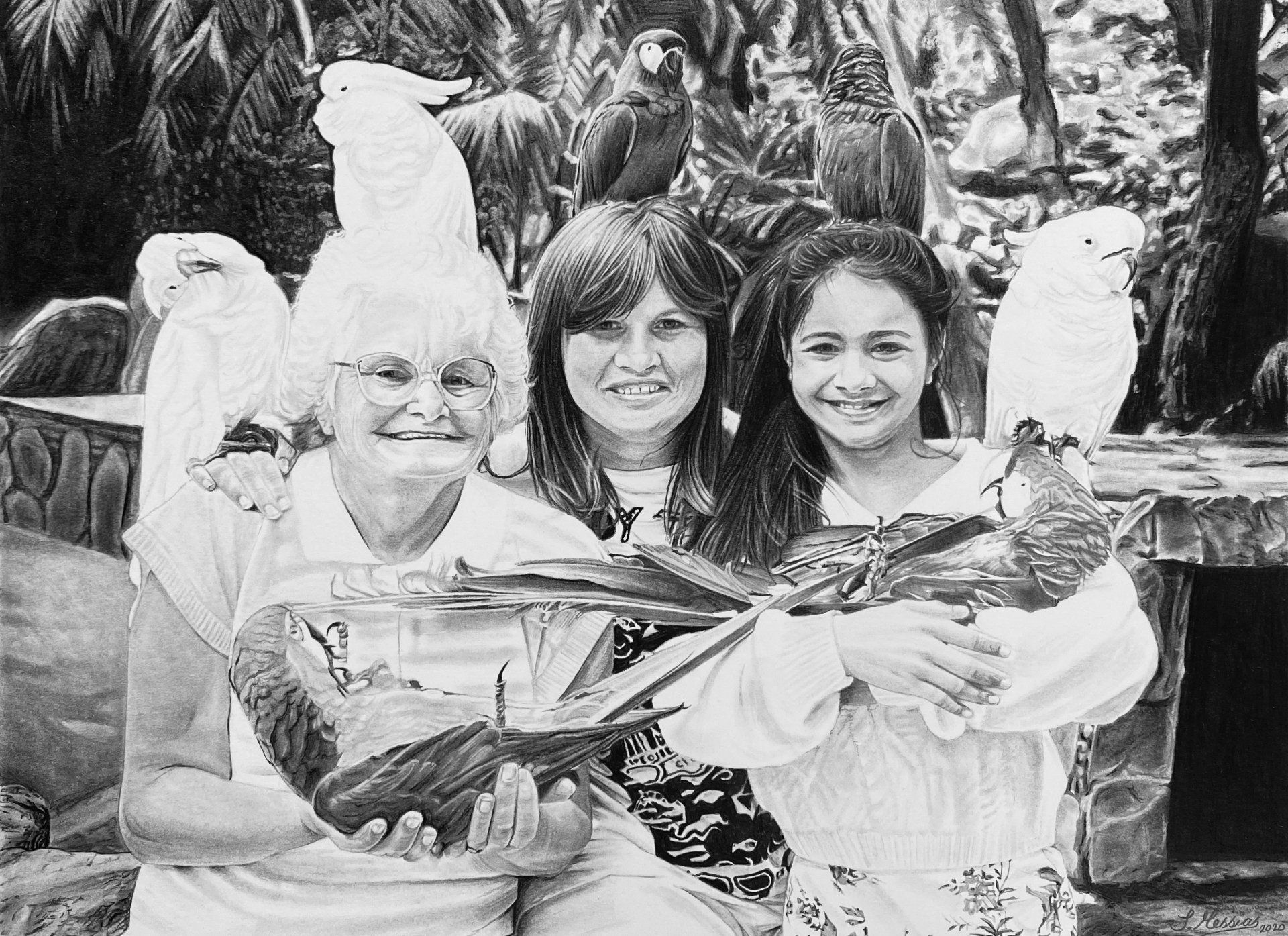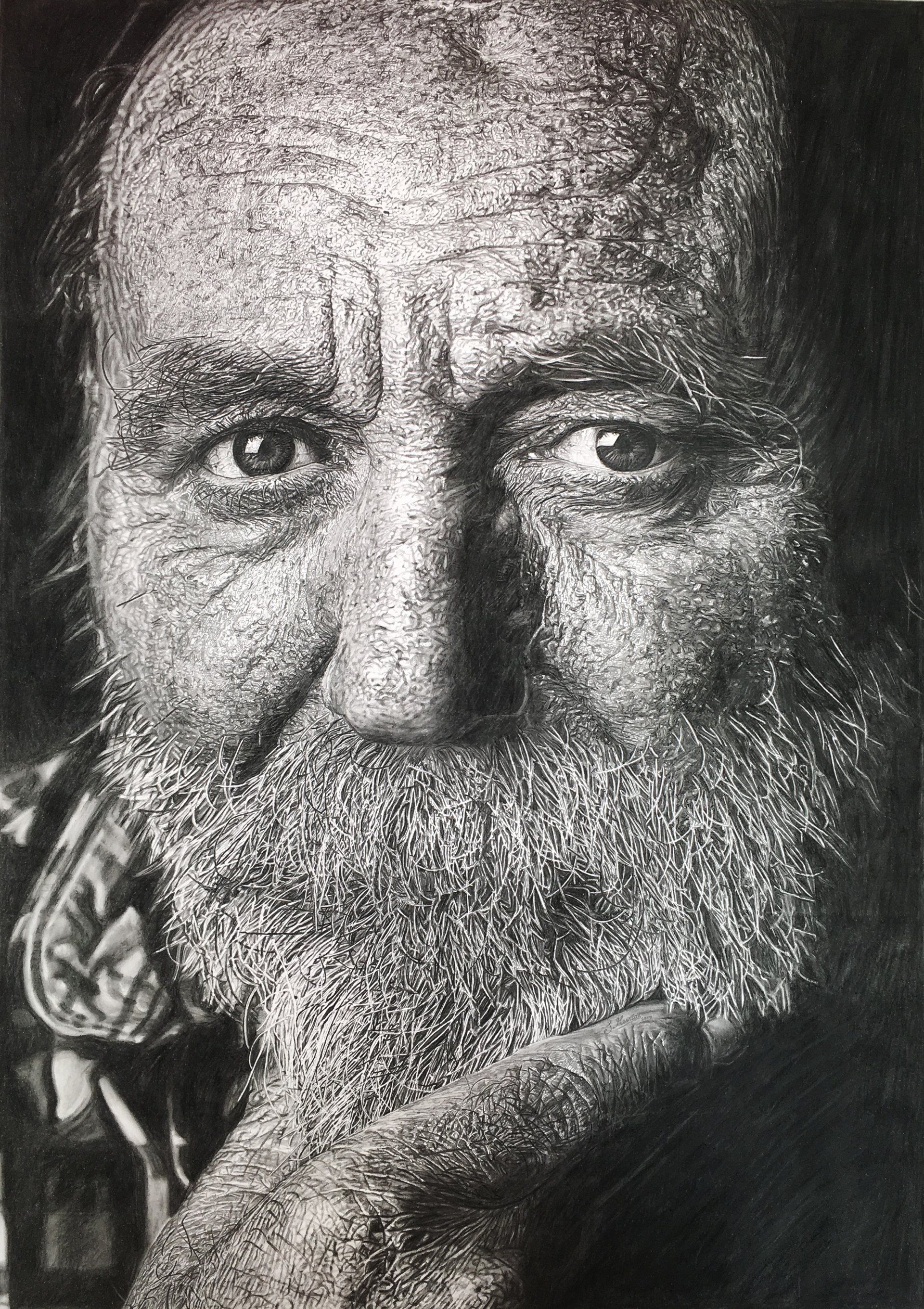 Below are original hyper-realistic drawings created using graphite, charcoal and black coloured pencil on paper.